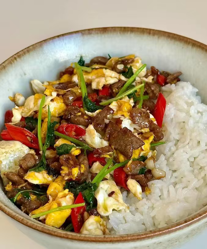 合二為一:溫柔的擁抱。 重新起鍋,倒入適量底油,油溫燒至四五成熱(約120-130度)時,將混合好的蛋液牛肉倒入鍋中。先不要急著翻炒,讓底部稍微凝固。然后用鍋鏟從邊緣向中心輕輕推動,讓未凝固的蛋液流到鍋底。等到蛋液大部分凝固,但表面仍略顯濕潤時,就可以關火出鍋了。利用鍋的余溫讓雞蛋完全熟透,這樣口感最是鮮嫩。