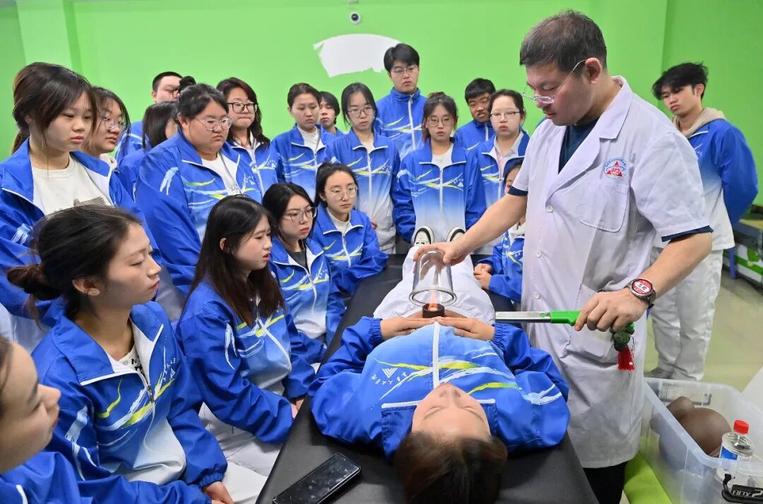 ▲?2025年12月,在長春人文學院,老年康復適宜技術的老師在指導學生們拔火罐。