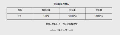 12月12日央行開展1205億元7天期逆回購操作