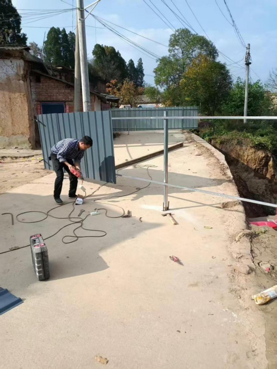 包村領導與網格長現場處置,用警戒線、圍擋隔離危險區域,并通過網格通平臺申報維修項目。