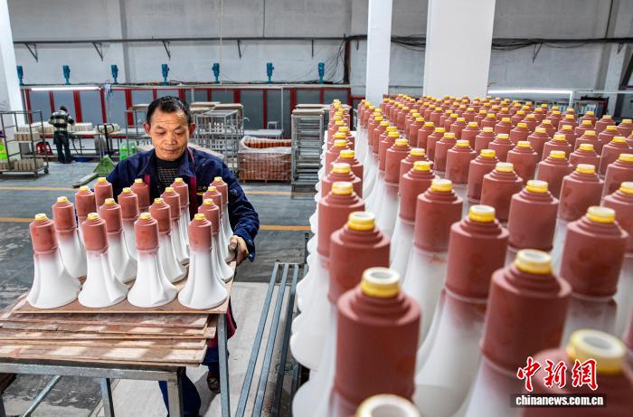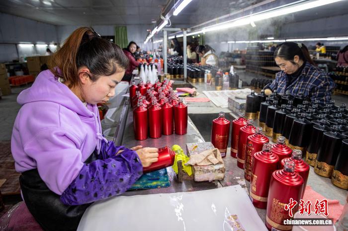 圖為工人在金沙縣經(jīng)濟(jì)開發(fā)區(qū)一家白酒包裝企業(yè)車間生產(chǎn)線上作業(yè)。史開心 攝
