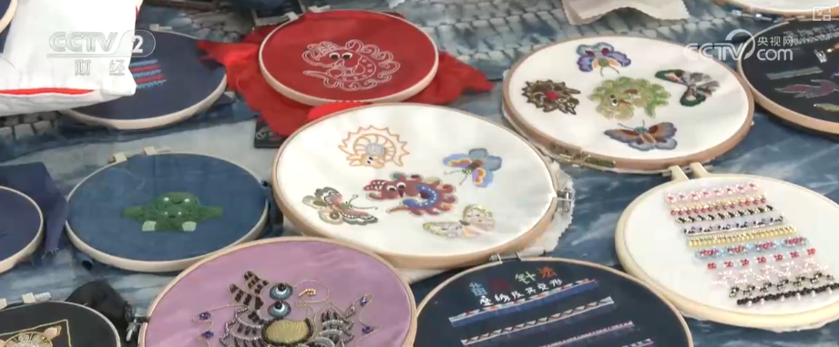 繡娘邰秀群介紹,之前,他們靠自己的手畫出來,畫了一個圖案紋樣再來繡。現在機器幾分鐘就可以幫他們打出來幾百個。現在接的訂單越來越多,繡娘們天天有工作干。