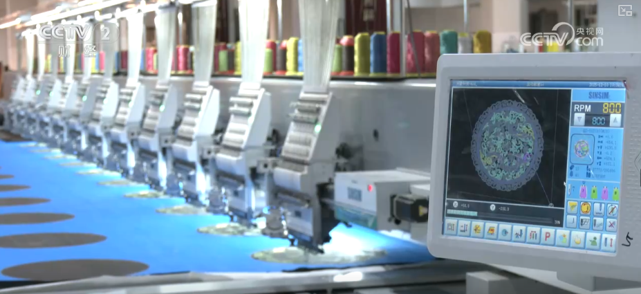 不遠處的生產車間,搭載大模型的智能生產設備,精準復刻平繡等傳統針法的基礎圖案,實現規模化生產。