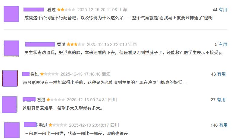 除了劇情槽點頗多,其實男主成毅也得到不少人的差評。