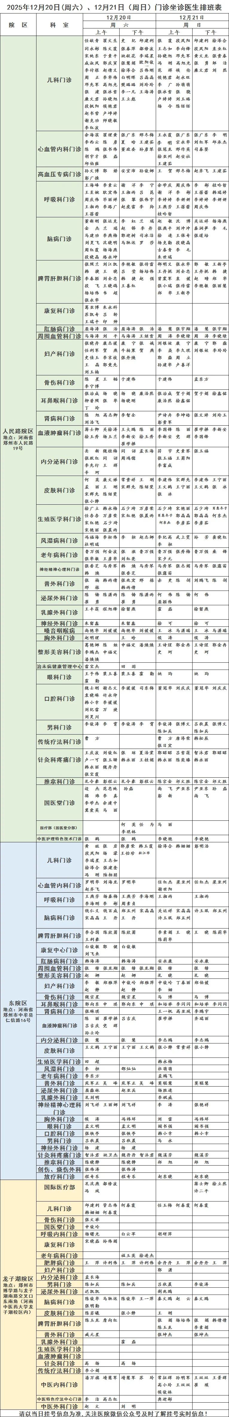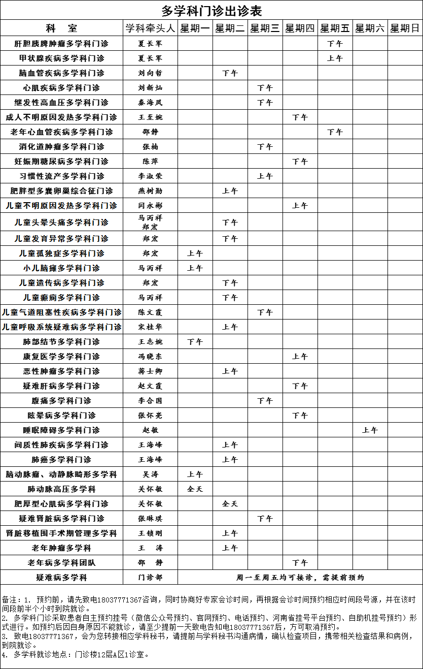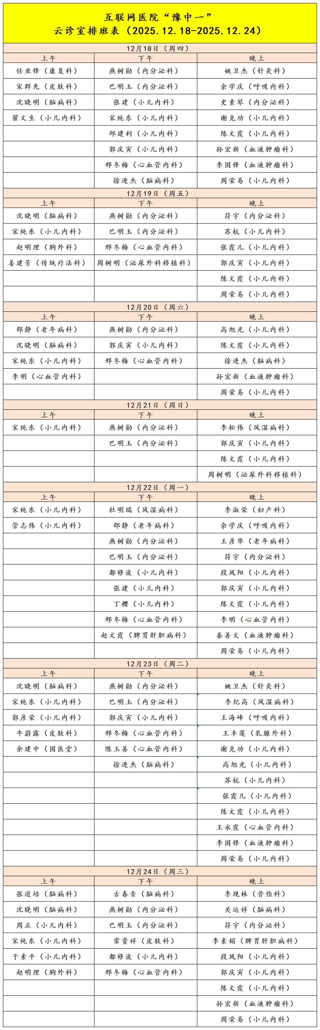 互聯(lián)網(wǎng)醫(yī)院“豫中一”云診室排班表