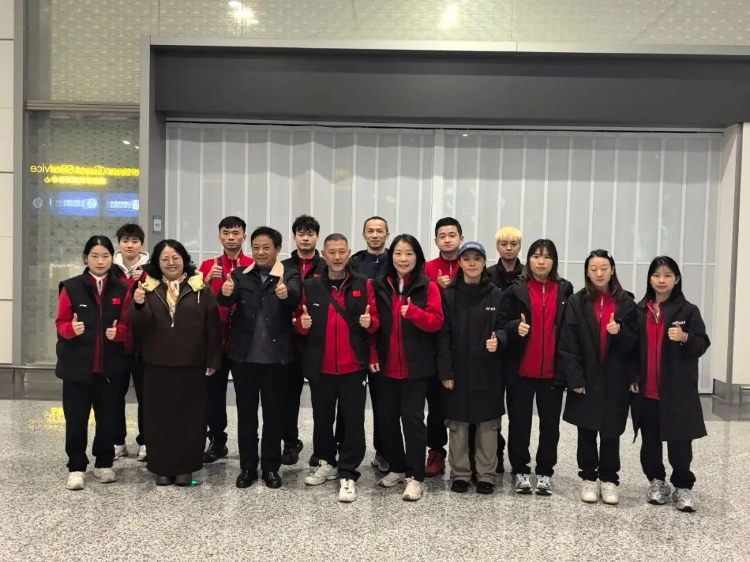 圖為貴陽市殘疾人羽毛球運動員在貴陽機場合影