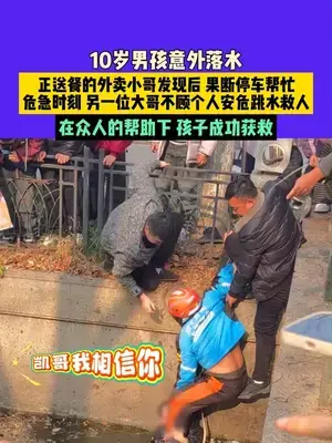 12月17日(發布)安徽,10歲男孩意外落水,正送餐的外賣小哥發現后果斷停車幫忙,危急時刻,另一位大哥不顧個人安危跳水救人,在眾人的幫助下孩子成功獲救(素材來源:@馬也 ;編輯:富貴) #正能量 #救人瞬間