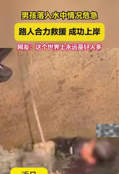 男孩落入水中情況危急 路人合力救援 成功上岸