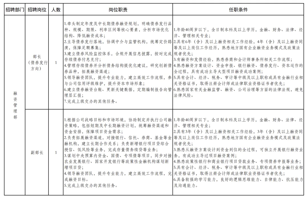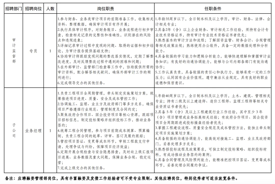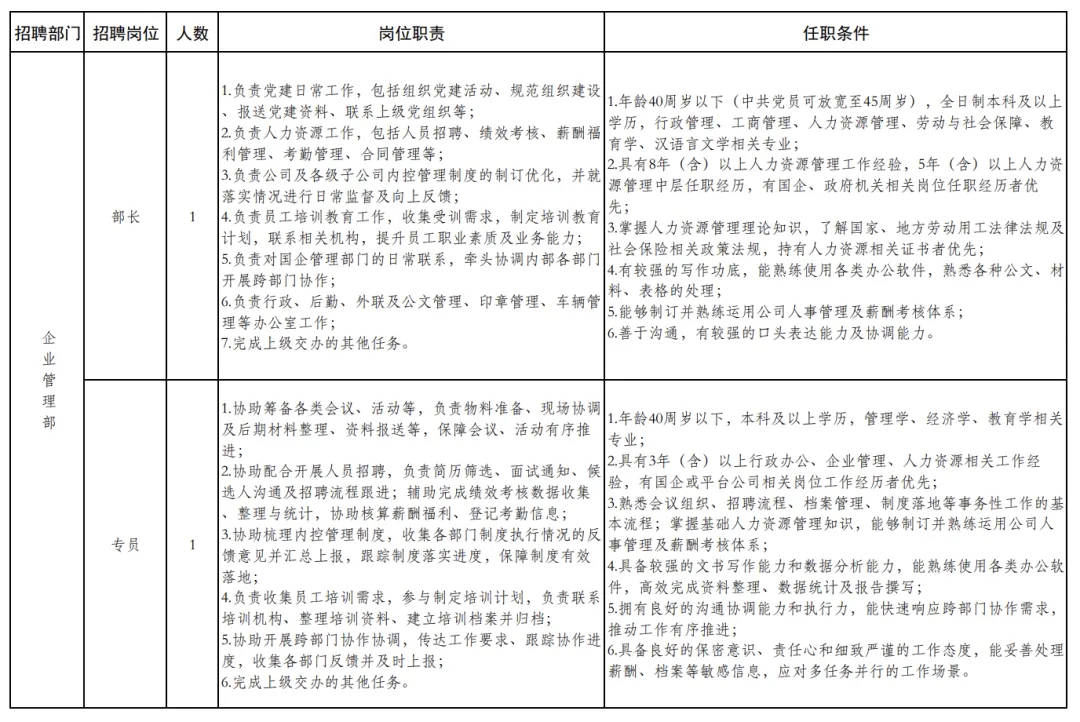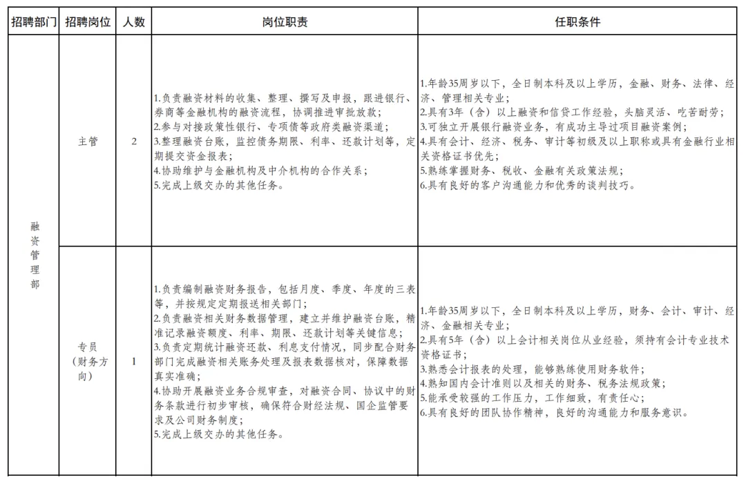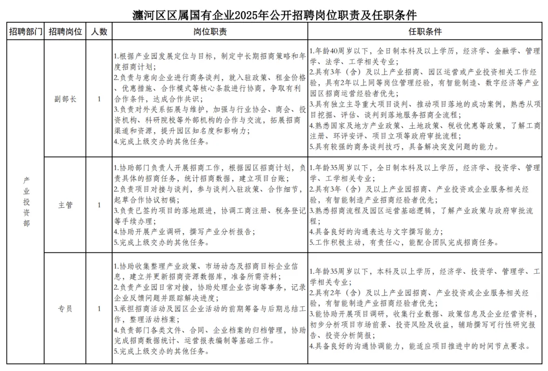 招聘崗位職責及任職資格詳見附件《瀍河區區屬國有企業2025年公開招聘崗位職責及任職條件》。