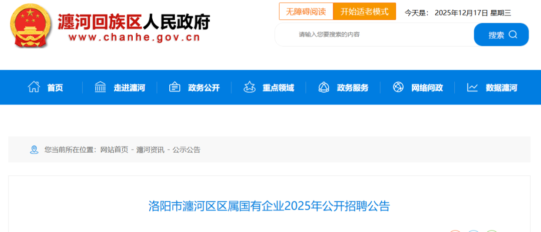 洛陽市瀍河區區屬國有企業2025年公開招聘公告為加快優化人力資源配置,吸引集聚優秀人才助力國資國企高質量發展,根據瀍河區區屬國有企業人才隊伍建設需要,按照公開平等、競爭擇優、人崗相適、依法依規的人才選拔原則,現決定面向社會開展公開招聘。有關事項公告如下: