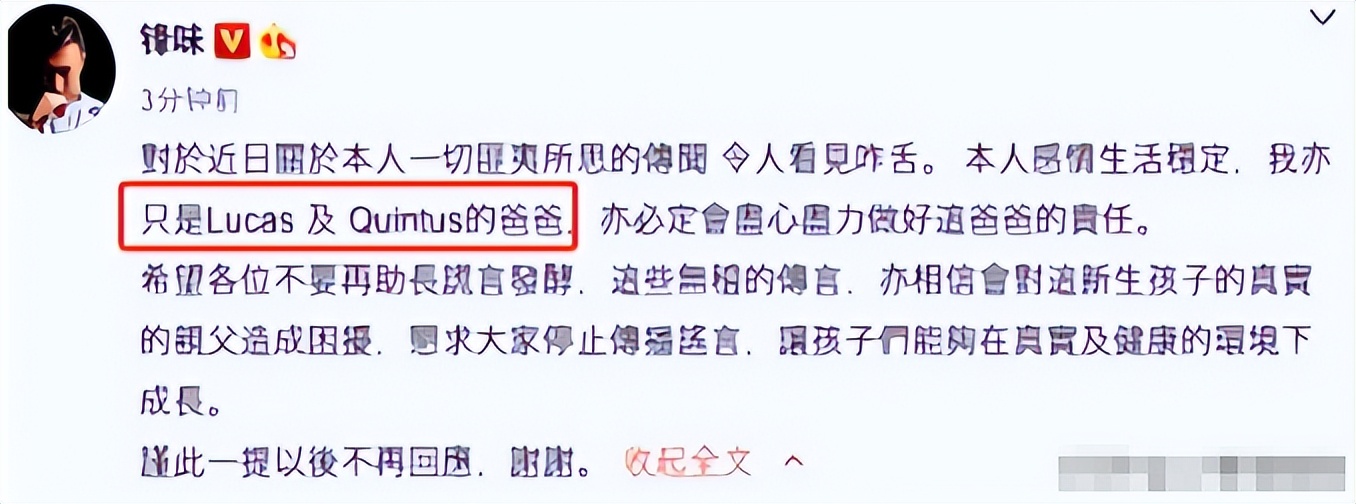 2018年11月,張柏芝工作室突然官宣她生下了三胎兒子,中文名張禮承,英文名Marcus,這個消息一出,全網都在猜孩子的生父是誰。