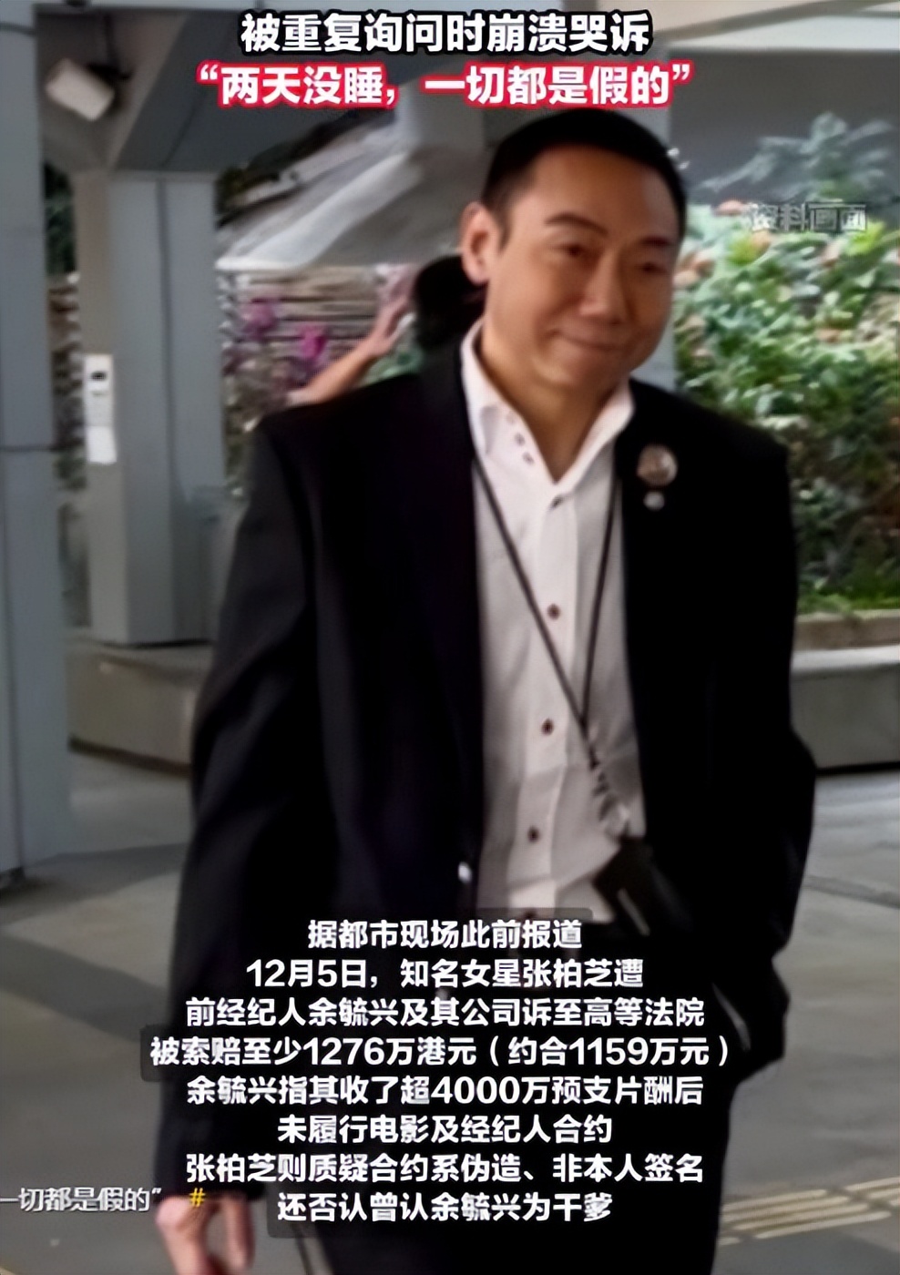 庭審中,余毓興稱2011年張柏芝離婚后急需4000萬港元付房款,他以預付片酬方式相助,簽有兩份合約,但張柏芝未履約。他還提及與張柏芝父親的交情,指責其忘恩負義。