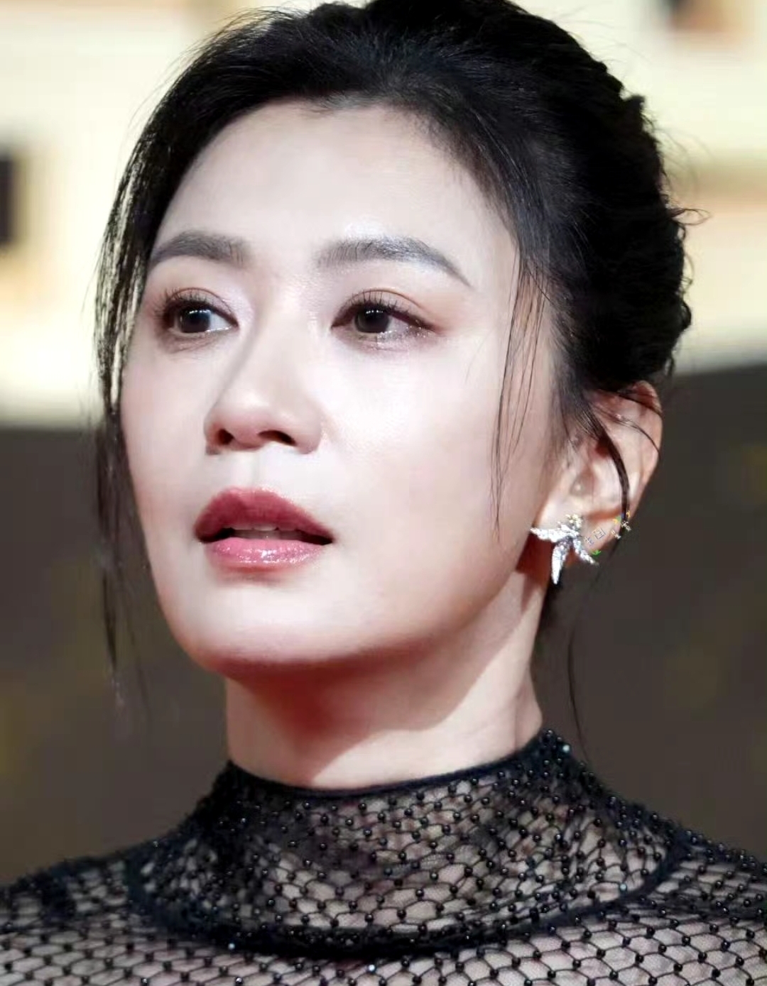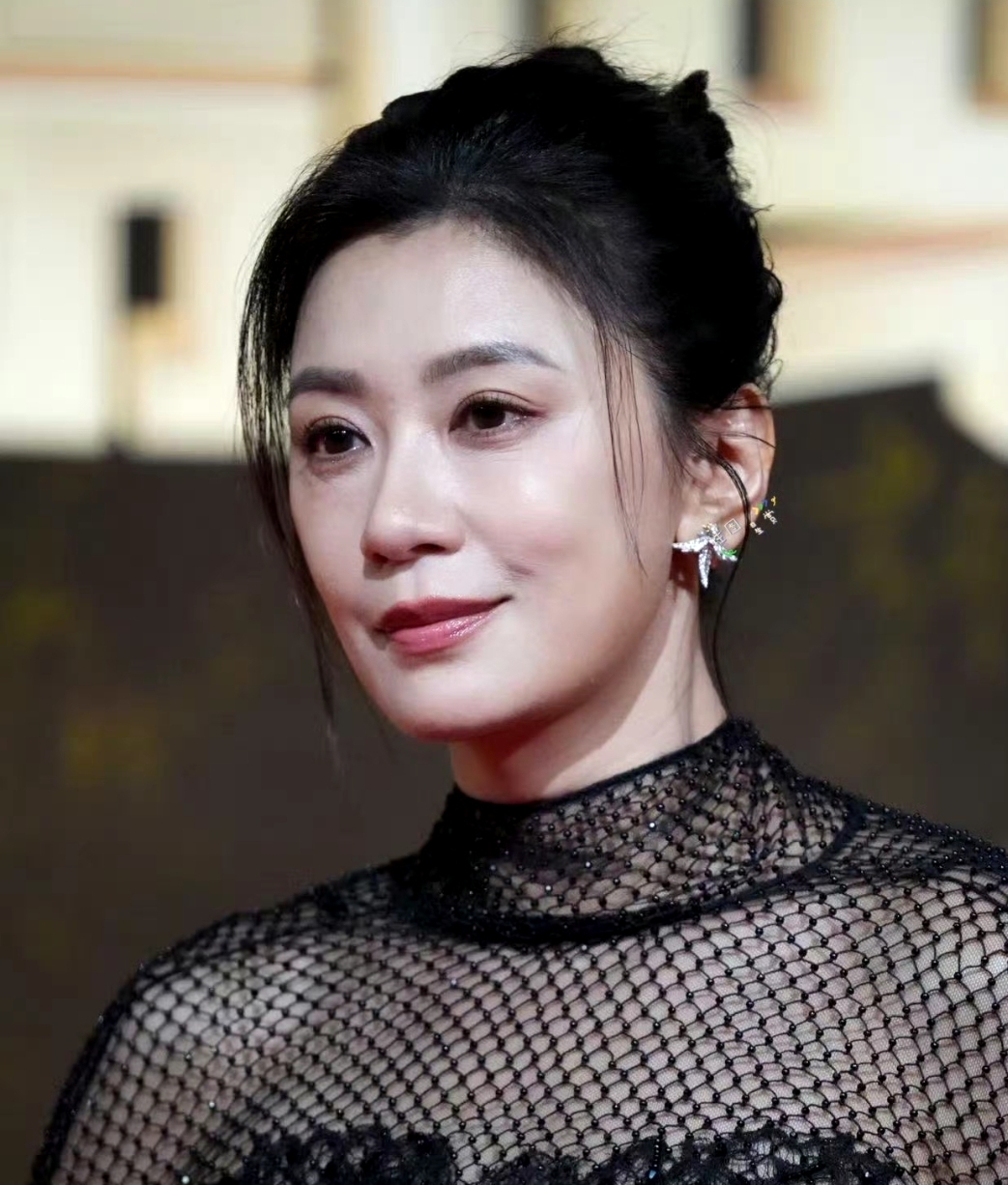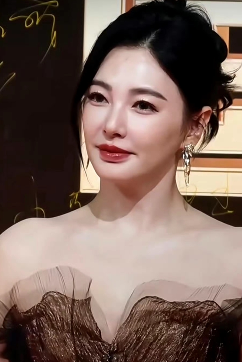 這一次參加國劇盛典,搭配一條黑色的緊身連衣裙,40多歲的年紀,臉蛋上沒有什么衰老的痕跡。