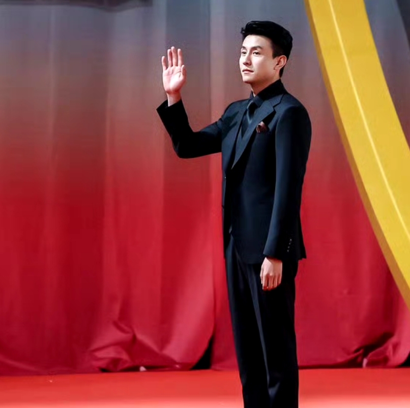 他這一次走紅毯還是搭配全套的黑色西服套裝,雖然沒有像短劇中加了濾鏡美顏那么帥氣,但是勝在真實自然。