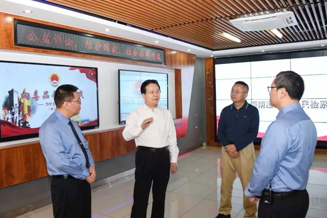 海南省檢察院黨組書記、檢察長張毅(左二)到澄邁縣檢察院調研。