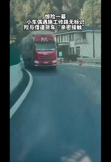 小車路遇修路施工方未設置標識差點與借道貨車相撞