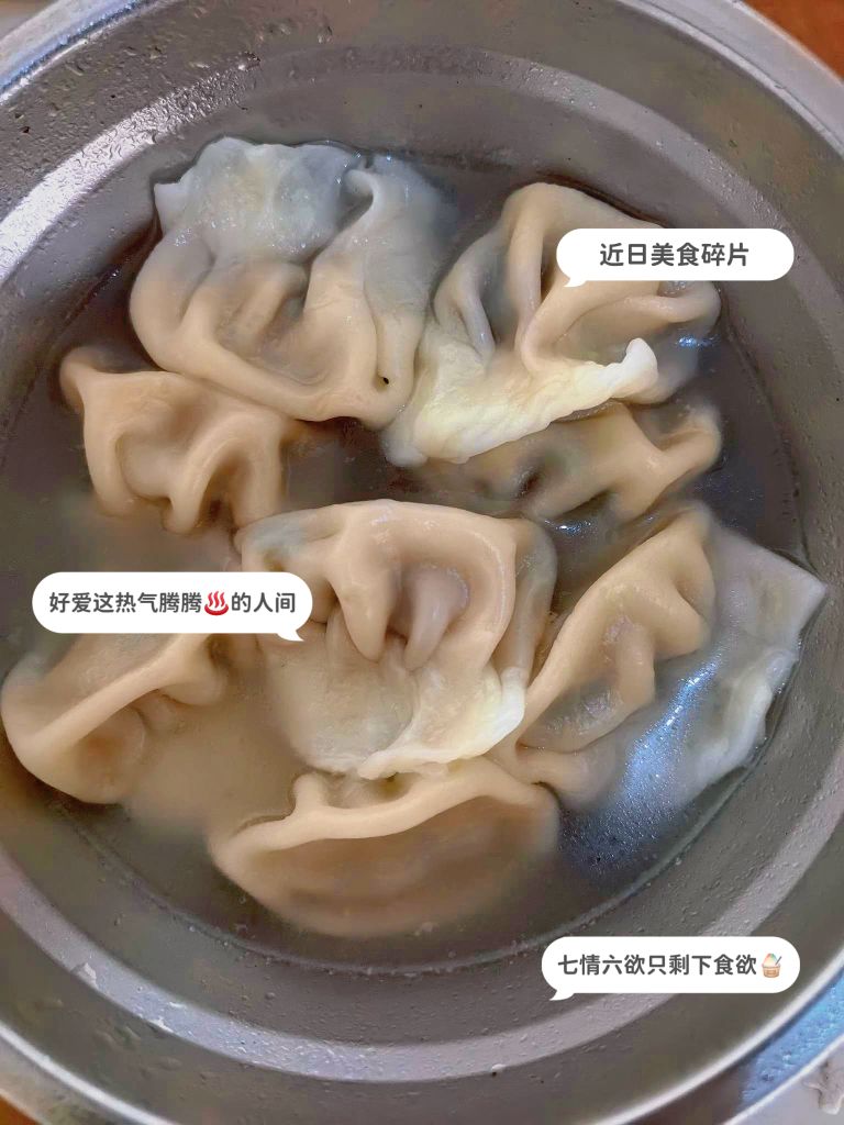 主角是白菜肉餡餃子。自己包的,餡塞得足,煮得胖嘟嘟的浮起來,蘸點陳醋,一口下去特別踏實。