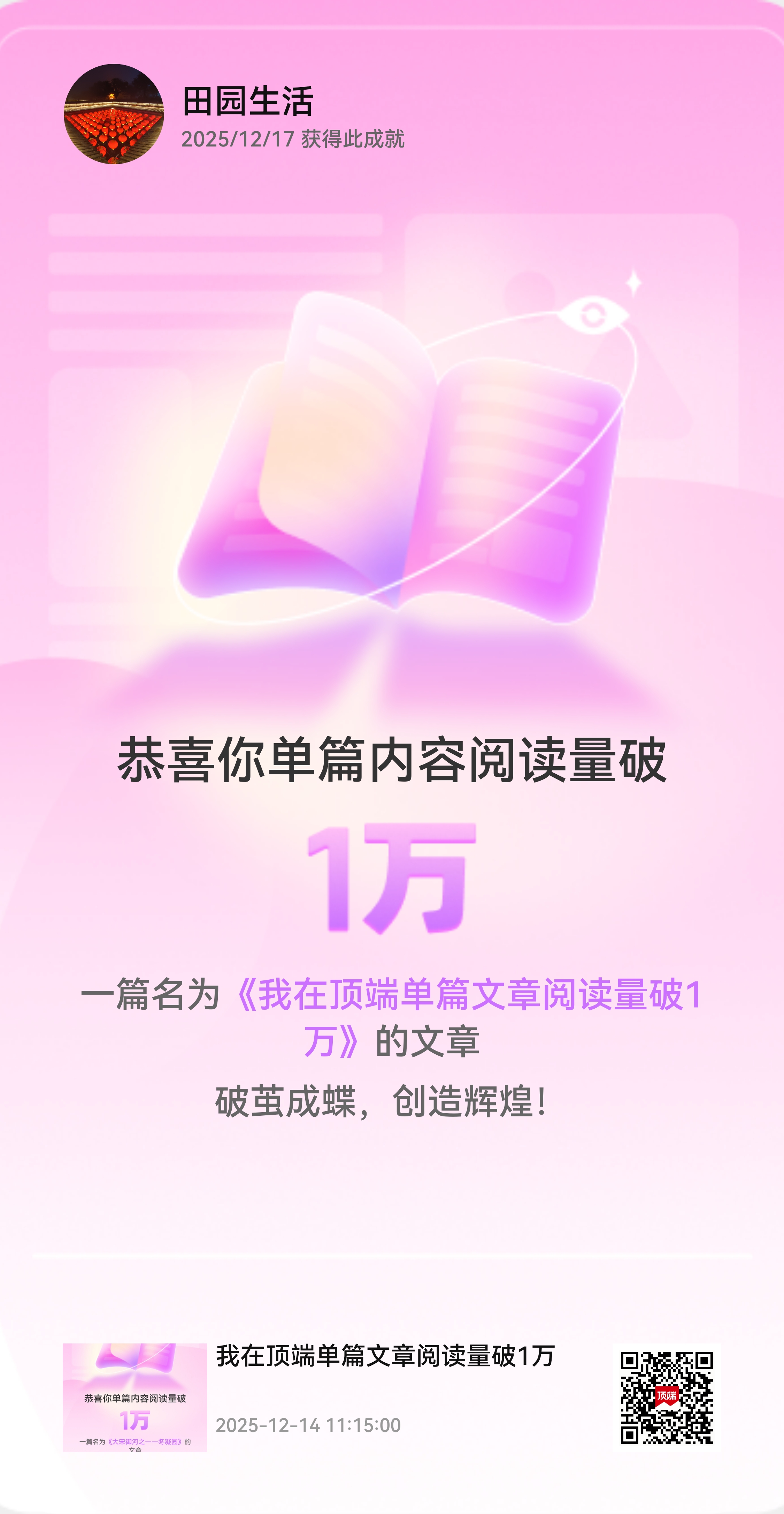 我在頂端單篇文章閱讀量破1萬,謝謝鼓勵和支持!