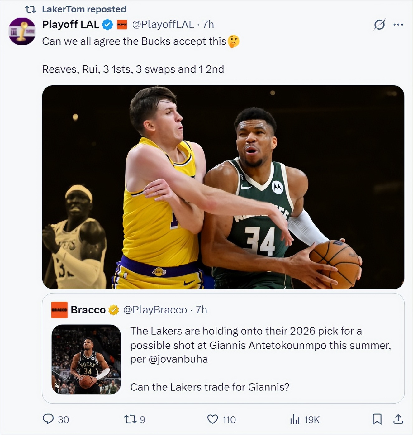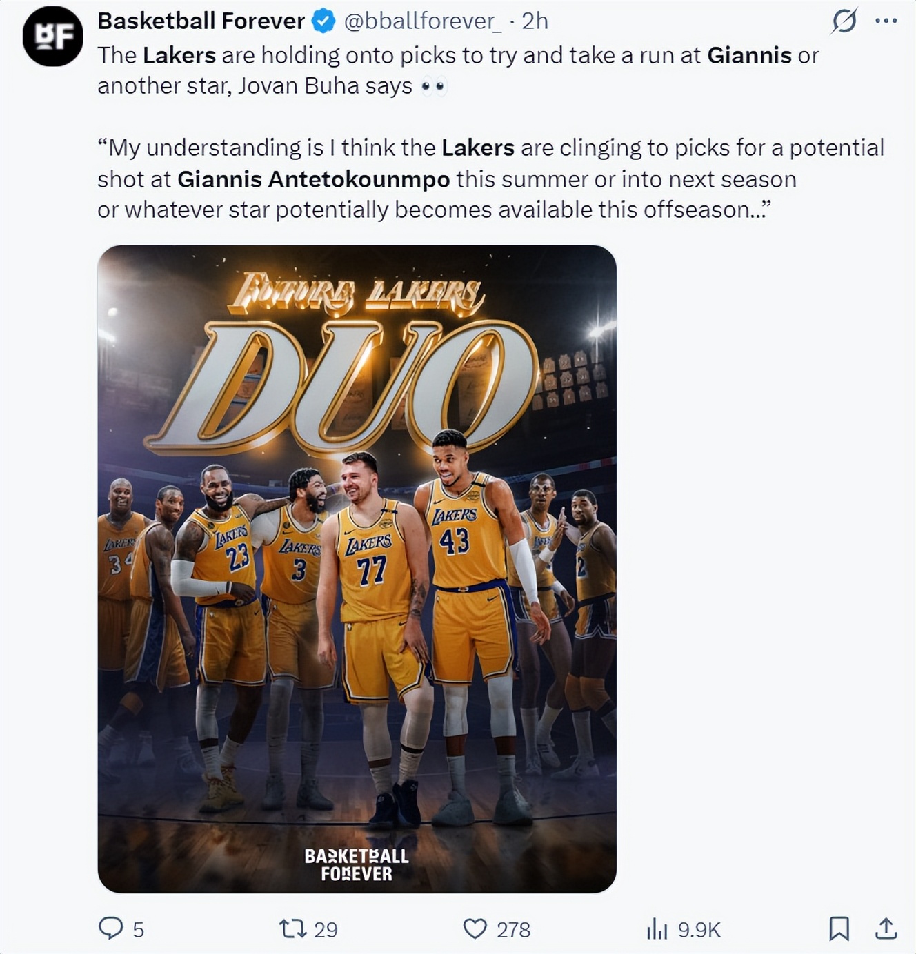 如此一來湖人就可以得到揚(yáng)尼斯,組建揚(yáng)尼斯+東契奇的巔峰超巨組合,當(dāng)然這是湖媒最理想的狀態(tài),因?yàn)橄駬P(yáng)尼斯這個級別的超巨肯定會有很多球隊(duì)報(bào)價(jià),說不定其他球隊(duì)的報(bào)價(jià)更吸引雄鹿呢?#2025頂端人氣創(chuàng)作者 #