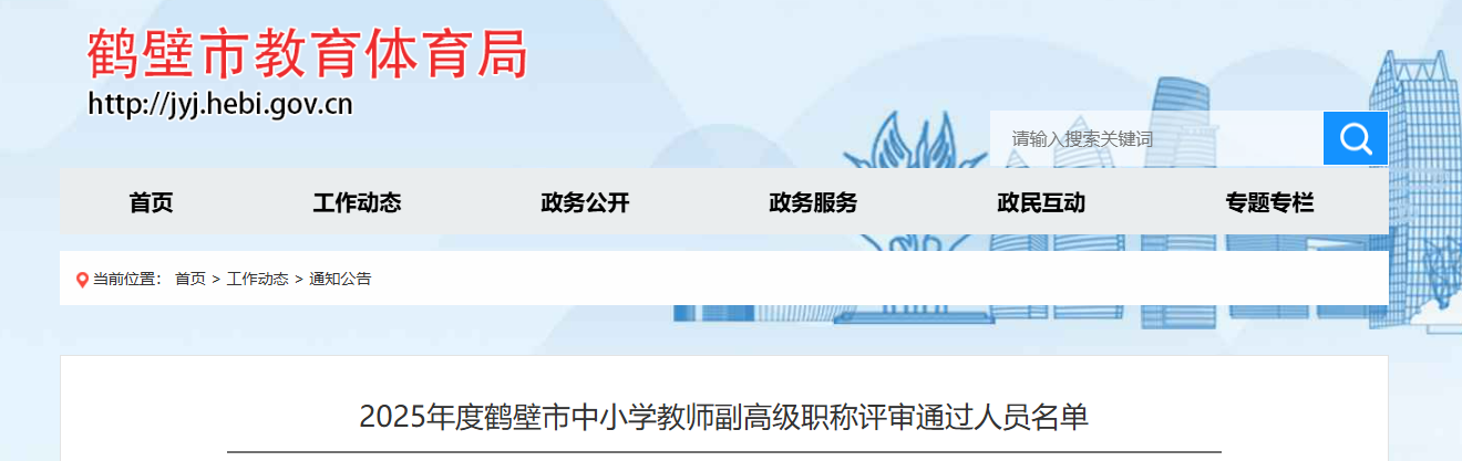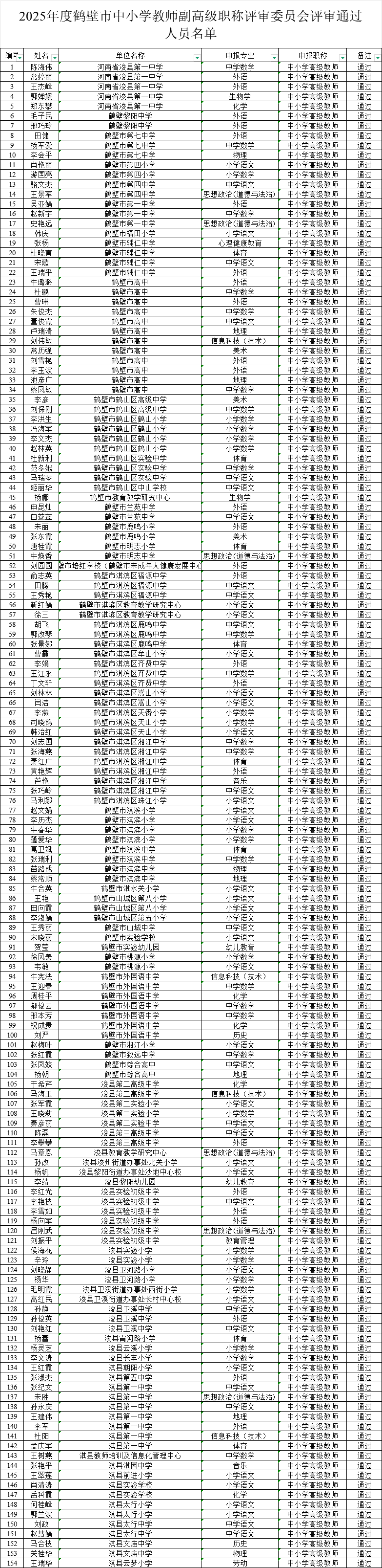2025年度鶴壁市中小學教師副高級職稱評審委員會評審通過人員名單