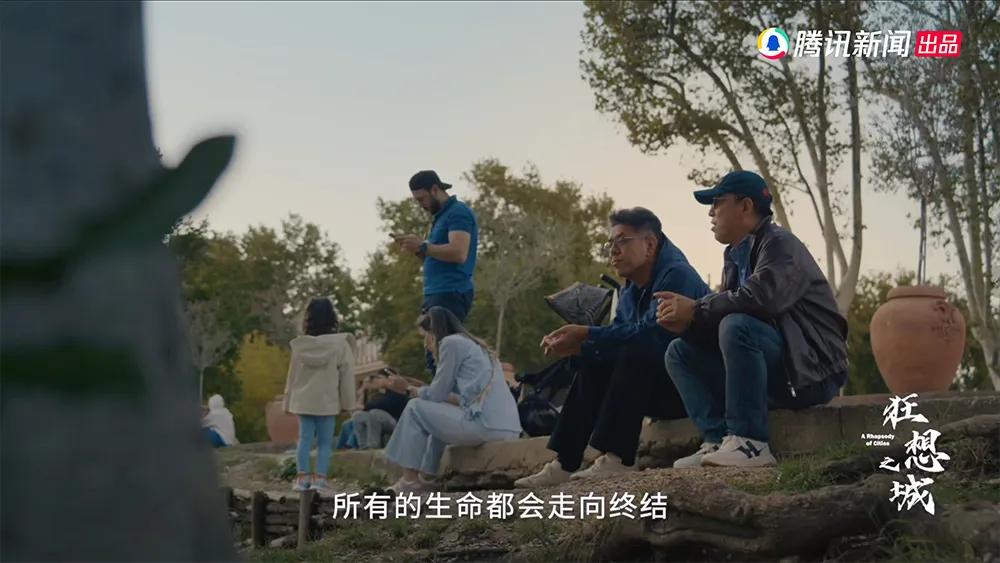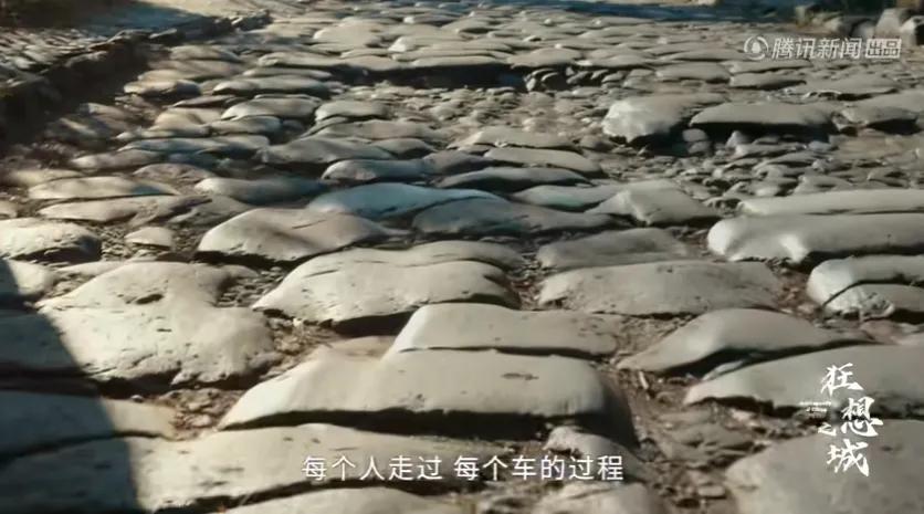 黃渤突然說出這集里我最喜歡的一段話:那些石塊一塊塊搬來的人,當(dāng)時(shí)并不知道它們會(huì)在這兒待這么久。每個(gè)人走過、每輛車碾過,都像刻刀在上面刻痕,這是一場(chǎng)延續(xù)千年的創(chuàng)作。