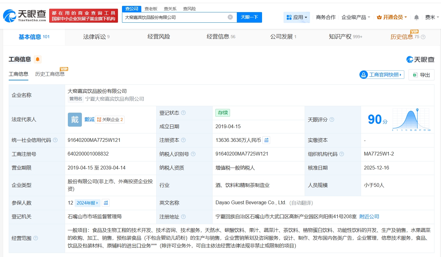 天眼查App顯示,近日,大窯嘉賓飲品股份有限公司發(fā)生工商變更,大窯汽水創(chuàng)始人王慶東卸任該公司法定代表人、董事長(zhǎng),戴誠(chéng)接任法定代表人并擔(dān)任董事,同時(shí),多位高管發(fā)生變更…