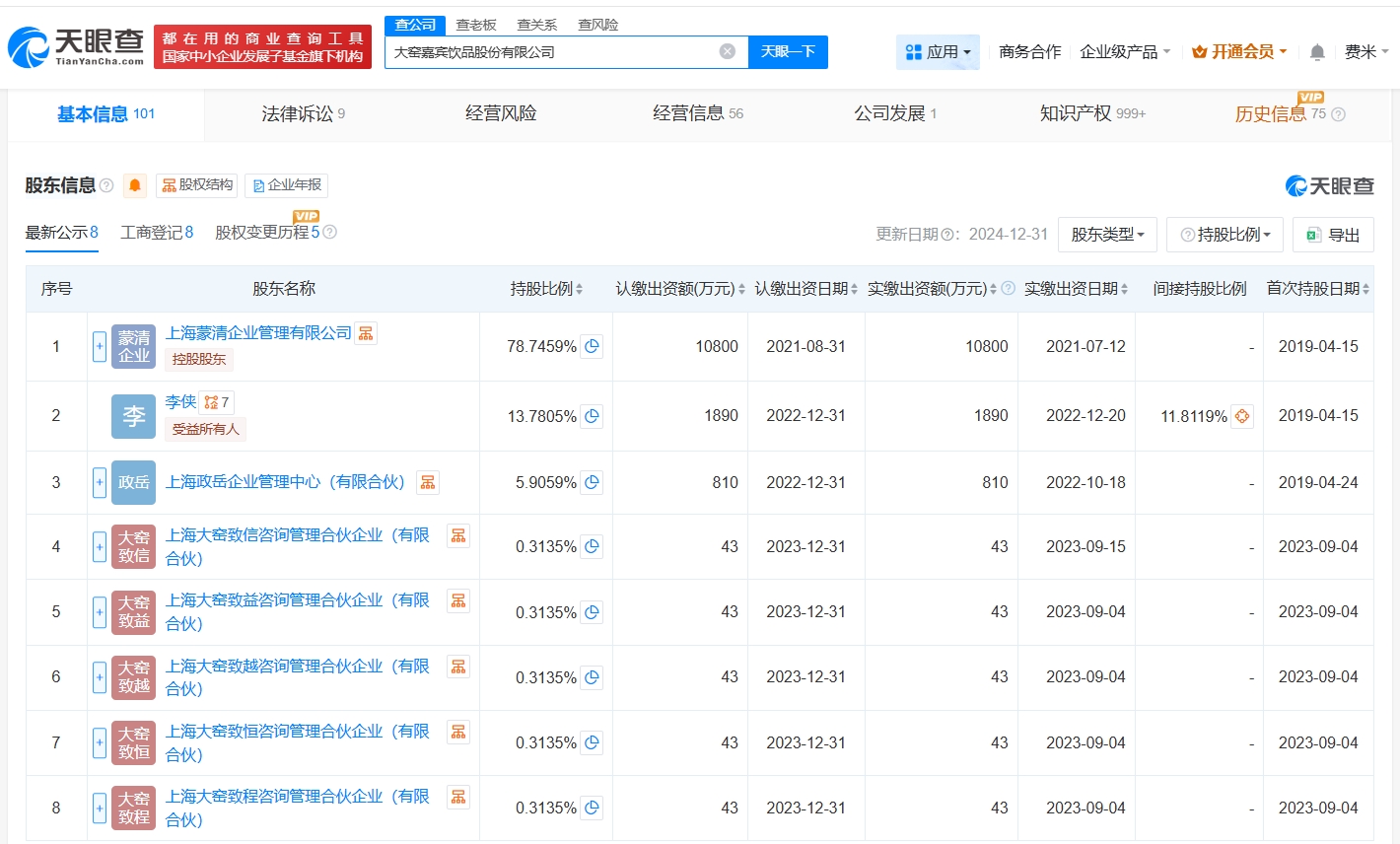 該公司成立于2019年4月,注冊(cè)資本約1.4億人民幣,經(jīng)營(yíng)范圍包括食品及生物工程的技術(shù)開發(fā)、技術(shù)咨詢、技術(shù)服務(wù)等,由上海蒙清企業(yè)管理有限公司、李俠、上海政岳企業(yè)管理中心(有限合伙)等共同持股。此前,王慶東卸任大窯香港旗下天津卓信企業(yè)管理有限公司法定代表人、執(zhí)行公司事務(wù)的董事、經(jīng)理。