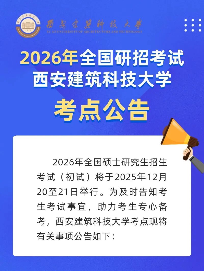 請考生密切關注研招網、陜西省教育考試院官網及微信公眾號、我考點發(fā)布的研考公告信息(西安建筑科技大學研究生招生信息網),以便順利參加考試。考生務必保持網上報名和確認時所填報的手機號碼暢通,以便及時接收重要提醒提示信息。如有疑問或遇突發(fā)狀況,可及時與考點或陜西省教育考試院聯(lián)系。