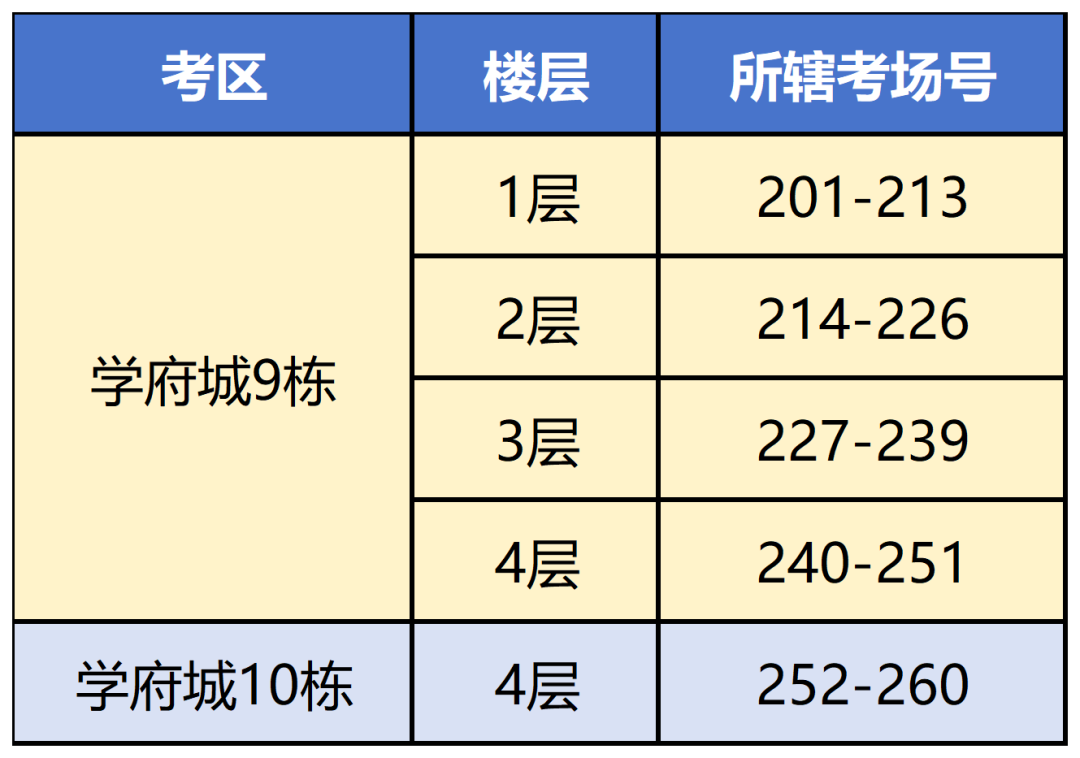 1.考場分布在學府城10#的考生:從學府城10#樓前物品存放區(qū)存取物品,并從10#樓前安檢通道進入考區(qū)。