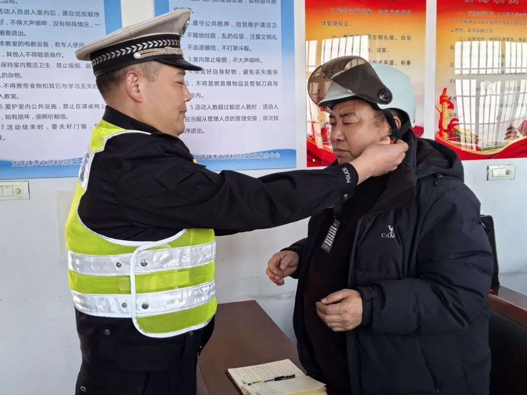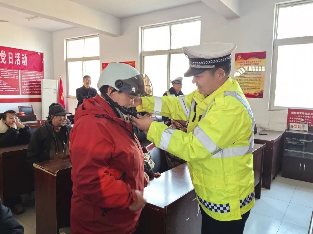 活動中,民輔警結(jié)合農(nóng)村道路交通特點,針對村民日常出行中常見的交通違法行為,通過發(fā)放宣傳資料、現(xiàn)場講解等方式,向村民詳細講解了騎乘摩托車、電動車不戴安全頭盔、農(nóng)用車違法載人、酒駕醉駕、超員超載等交通違法行為的危害和后果。同時,向村民現(xiàn)場演示了安全頭盔和安全帶的規(guī)范使用方法,并叮囑村民們騎乘電動車、摩托車必須規(guī)范佩戴安全頭盔,駕乘汽車務(wù)必全程全員系好安全帶。