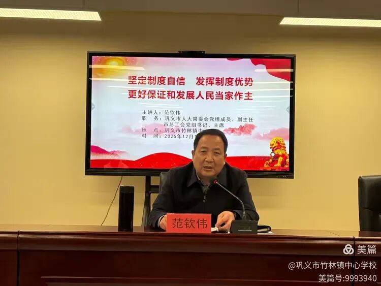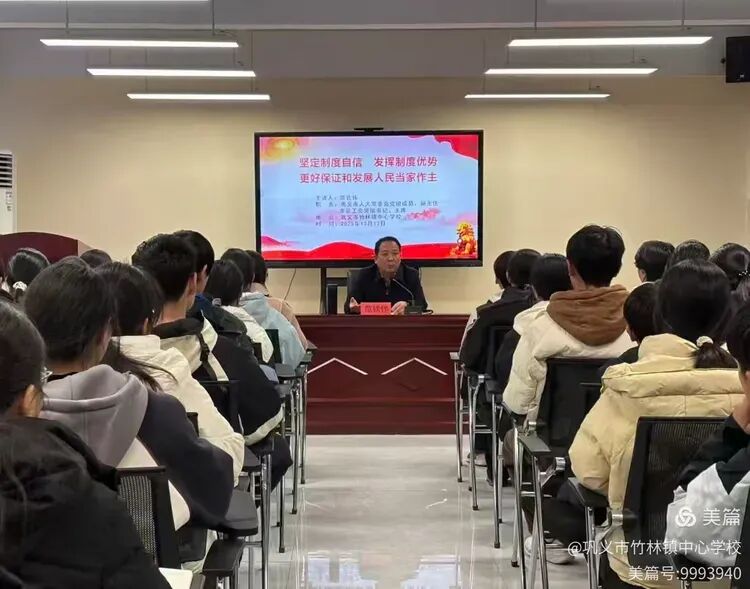12月17日,鞏義市人大常委會黨組成員、副主任、市總工會黨組書記、主席范欽偉到竹林鎮(zhèn)中心學(xué)校為師生上思政課,竹林鎮(zhèn)人大主席李米莎,鎮(zhèn)中心校成員、思政教師等與學(xué)生共同聆聽了這堂精彩的思政課。