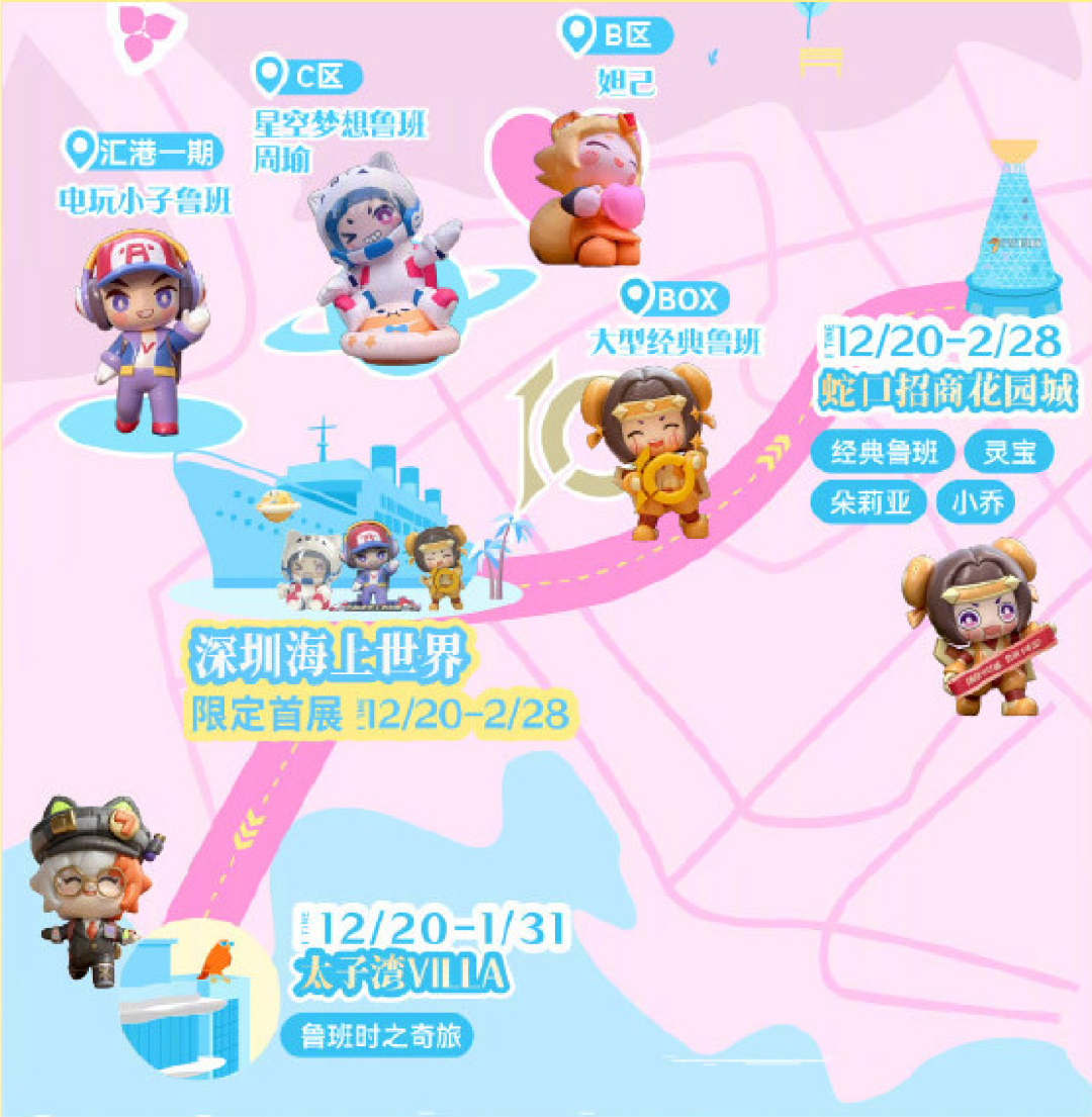 京東MALL、海岸城、后海匯、歡樂頌等商圈,將同步推出王者榮耀十周年主題打卡氛圍裝置。