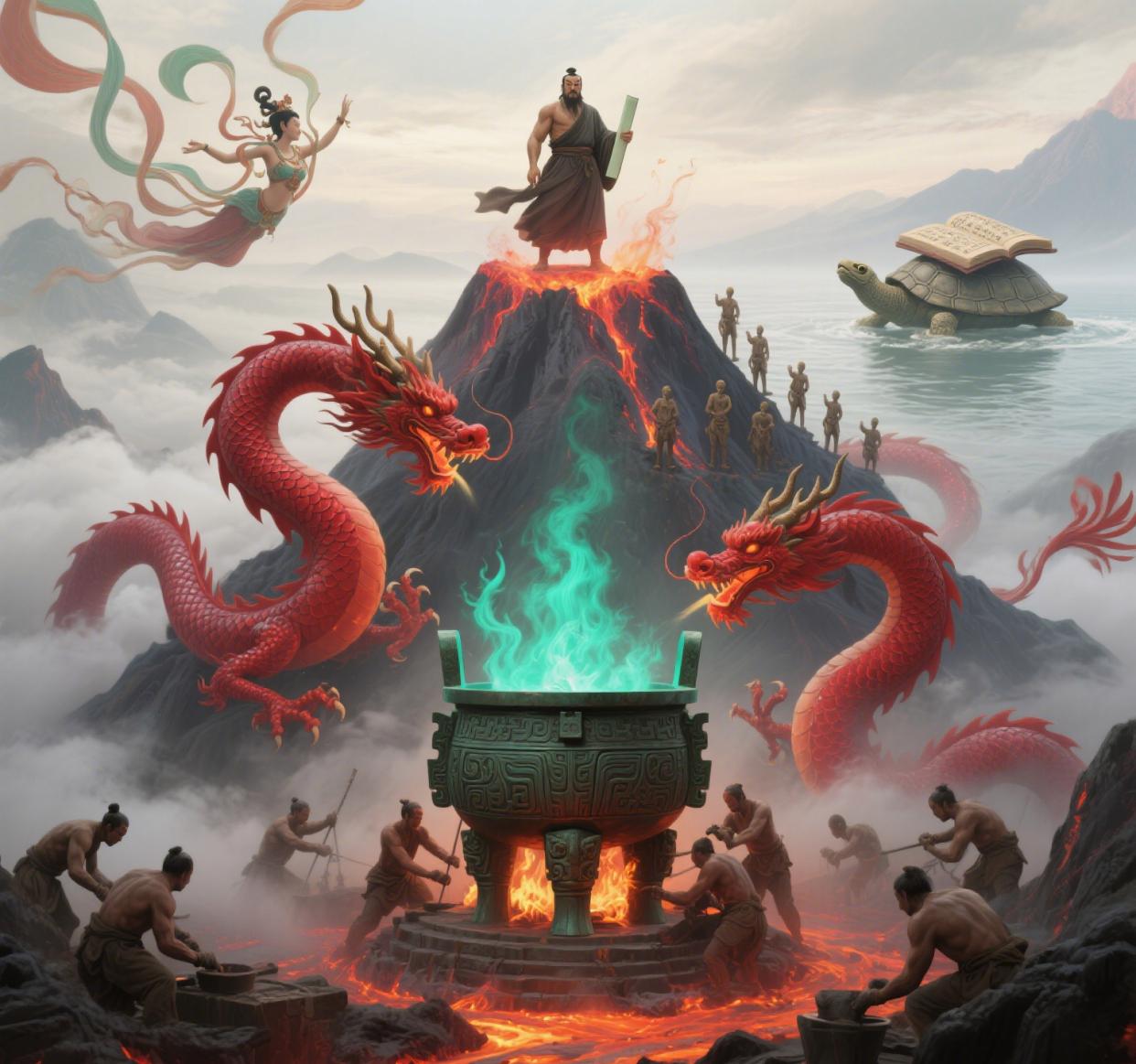 從治水安民到會盟定鼎,大禹用智慧與魄力,將洪荒時代的散亂部落,凝聚成一個血脈相連的文明共同體。涂山的風,吹過了數千年的歲月,依舊在訴說著華夏文明從蒙昧走向開化、從分裂走向統一的偉大開端。而那象征著天下一統的九鼎,早已超越了青銅的質地,成為烙印在每個中國人心中的文化圖騰。