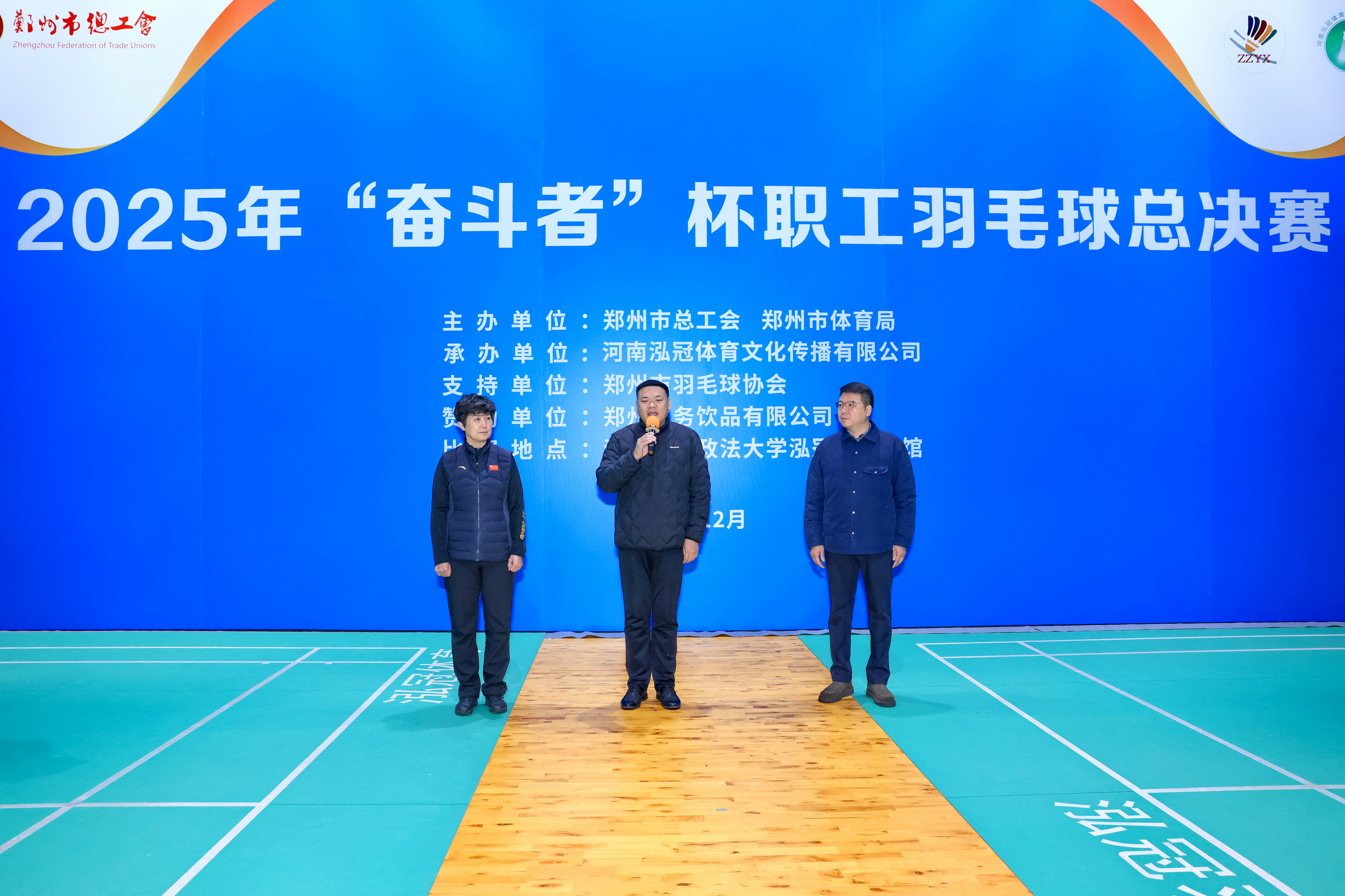 【鄭工E家 消息】12月16日上午9時,2025年“奮斗者杯”鄭州市職工羽毛球總決賽在河南財經政法大學(文北校區)羽毛球館正式開幕。本次賽事由鄭州市總工會、鄭州市體育局聯合主辦,鄭州市羽毛球協會指導,不僅是展現職工體育風采的重要平臺,更以運動為紐帶,弘揚勞模精神、勞動精神、工匠精神,為鄭州國家中心城市建設凝聚職工力量。
