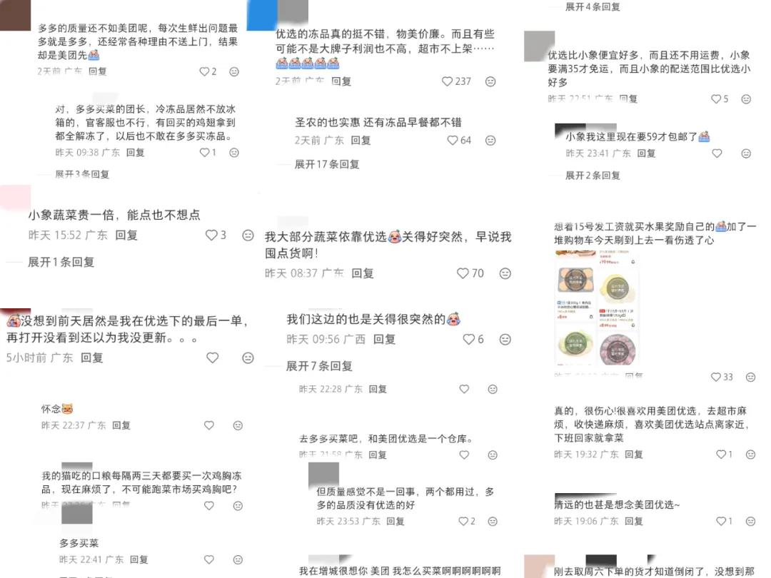 美團優選的突然落幕讓廣東、浙江的打工人猝不及防,紛紛發帖“哀悼”: