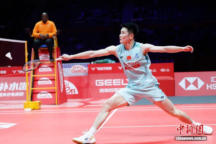 12月17日,2025年世界羽聯世界巡回賽總決賽在浙江杭州舉行。在首日進行的男單小組賽B組比賽中,中國選手石宇奇2:0戰勝隊友李詩灃。圖為李詩灃在比賽中接球。 中新網記者 肖健 攝