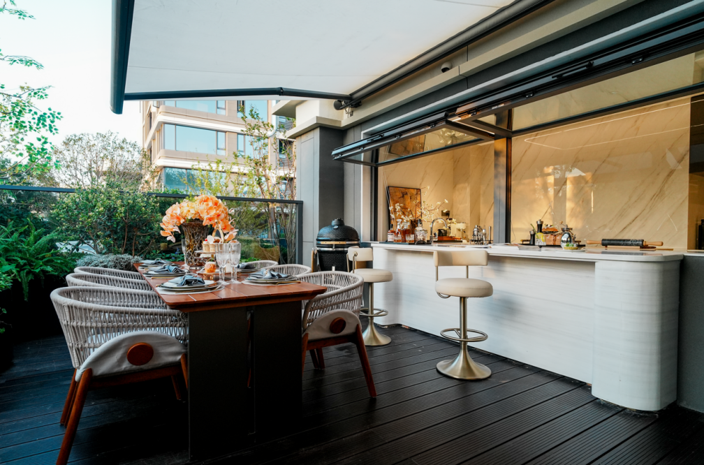 媽媽在廚房做飯,爸爸陪著寶貝在客廳堆積木順便和媽媽聊著日常,爺爺奶奶在露臺種種花草,逗下貓貓狗狗,簡直是夢中情房照進現實。