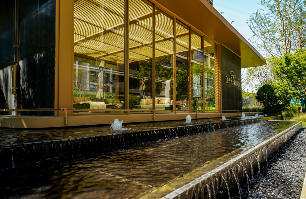 步入園區中央的城市會客廳,大面積落地窗,讓室內外無界相融,業主可以一邊看書閑聊,一邊欣賞園區的四季美景,如同置身水域浮島,身心舒暢。