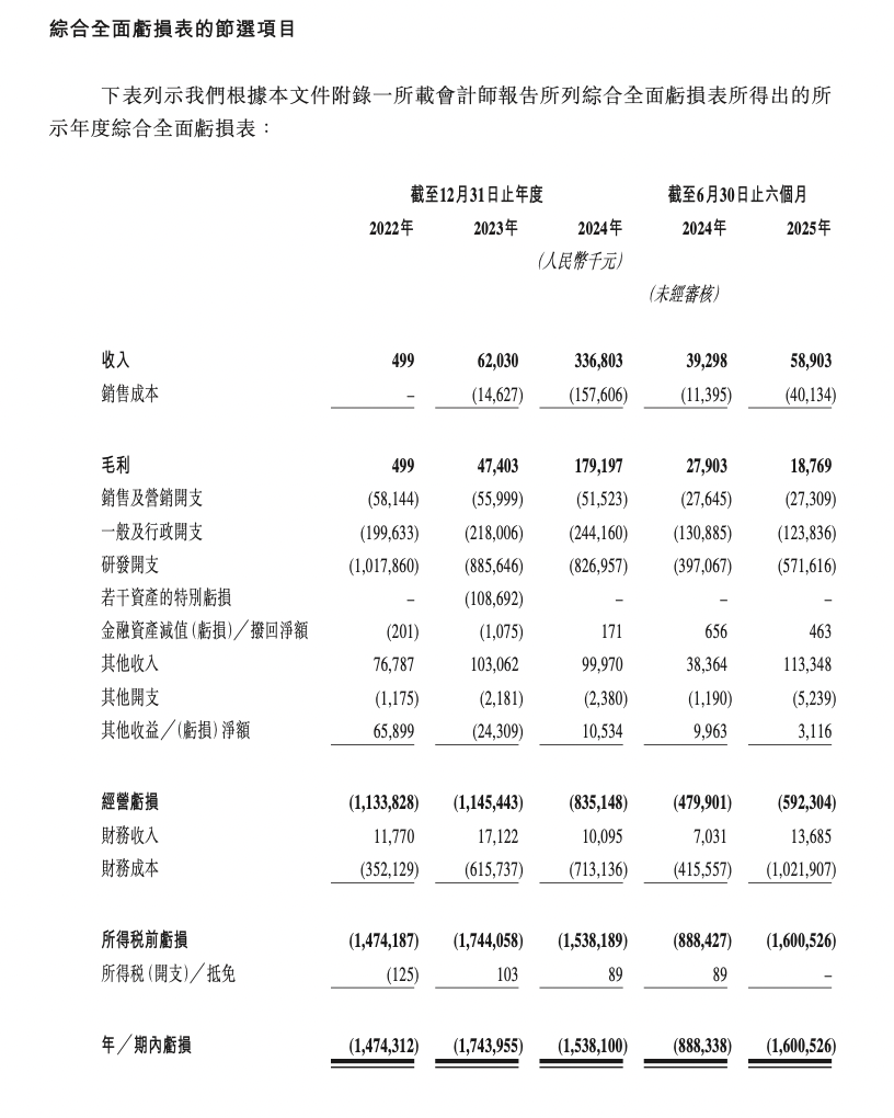 2025年上半年,公司實現(xiàn)收入為5890.3萬元,同比增長50%;期內(nèi)虧損為16.01億元,而上年同期虧損為8.88億元。