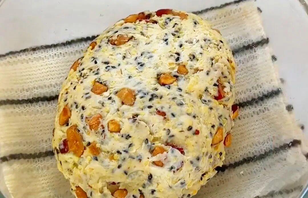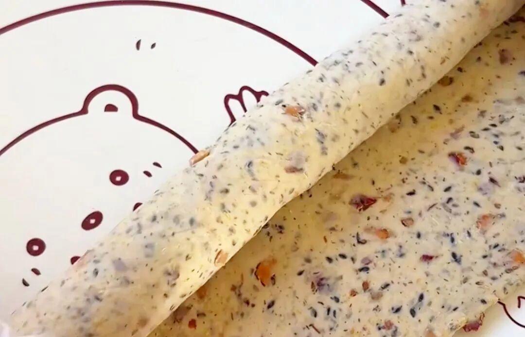 50g小米,250g中筋面粉,3g酵母,100g水,60g紅棗碎,20g黑芝麻。