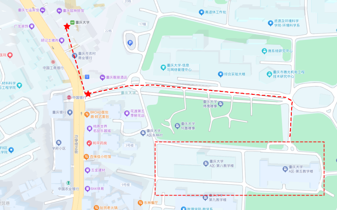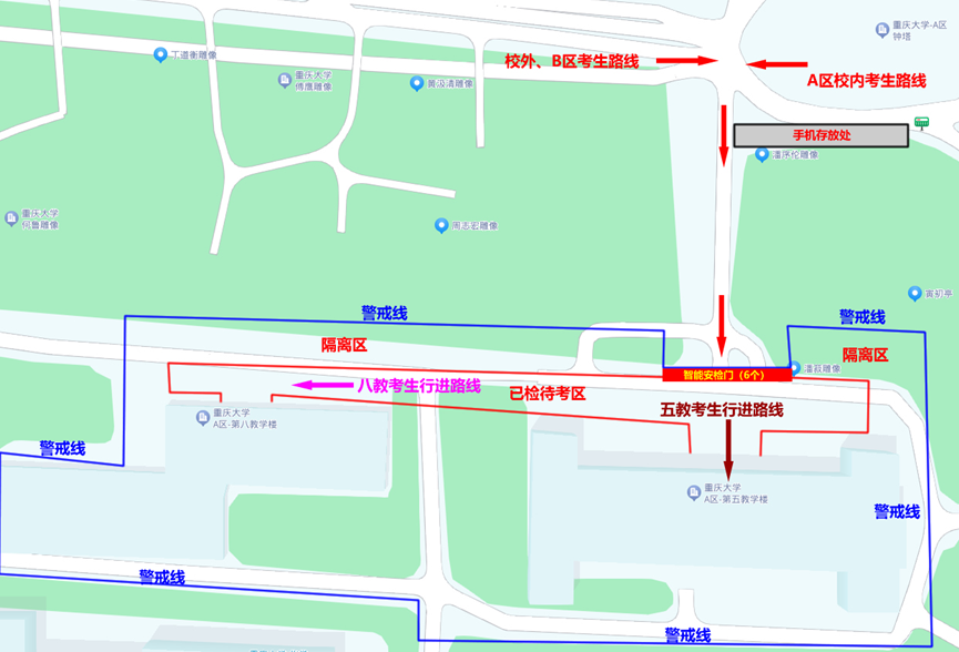 5、重慶大學考點考場具體位置及相關區域示意圖: