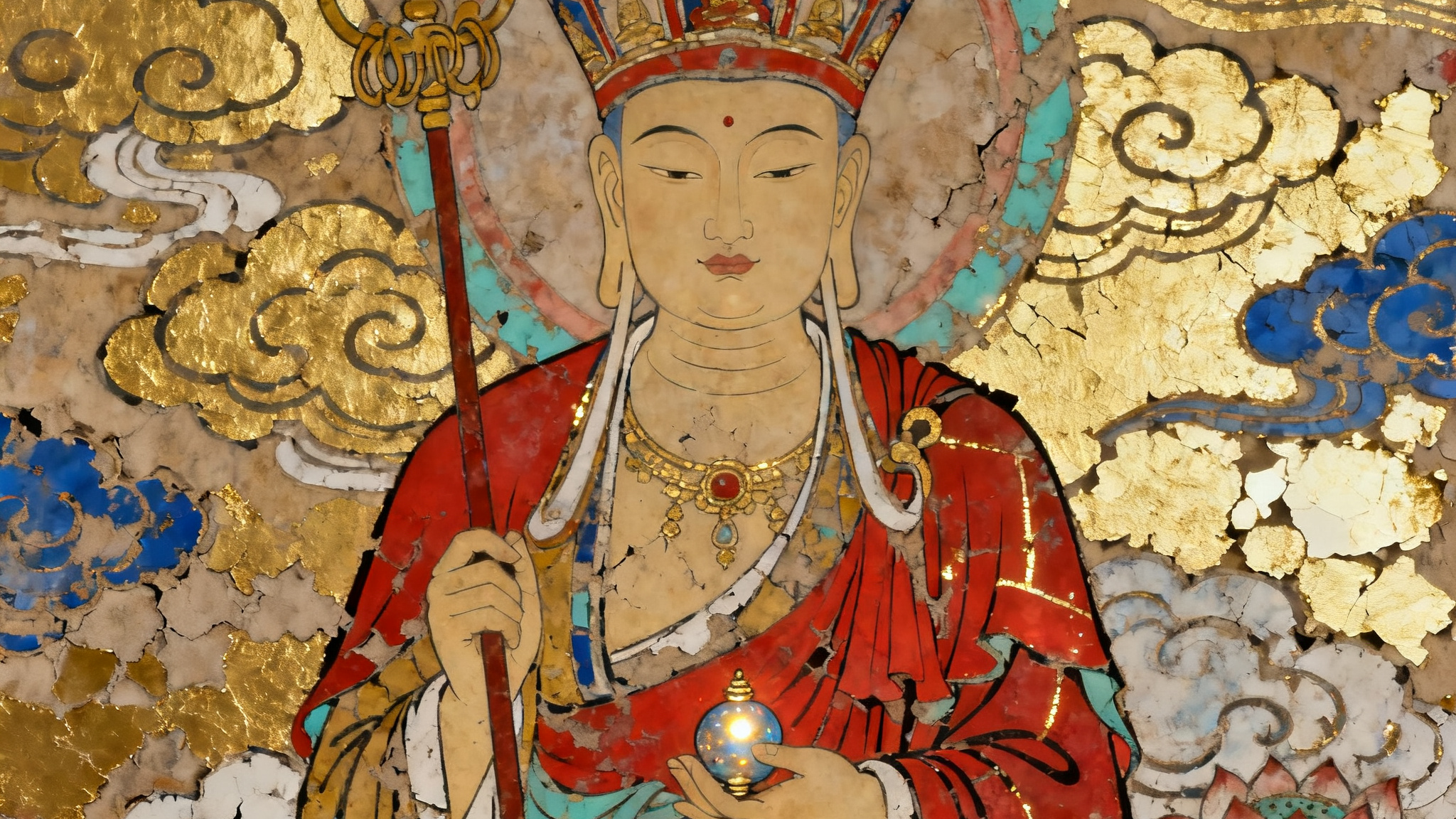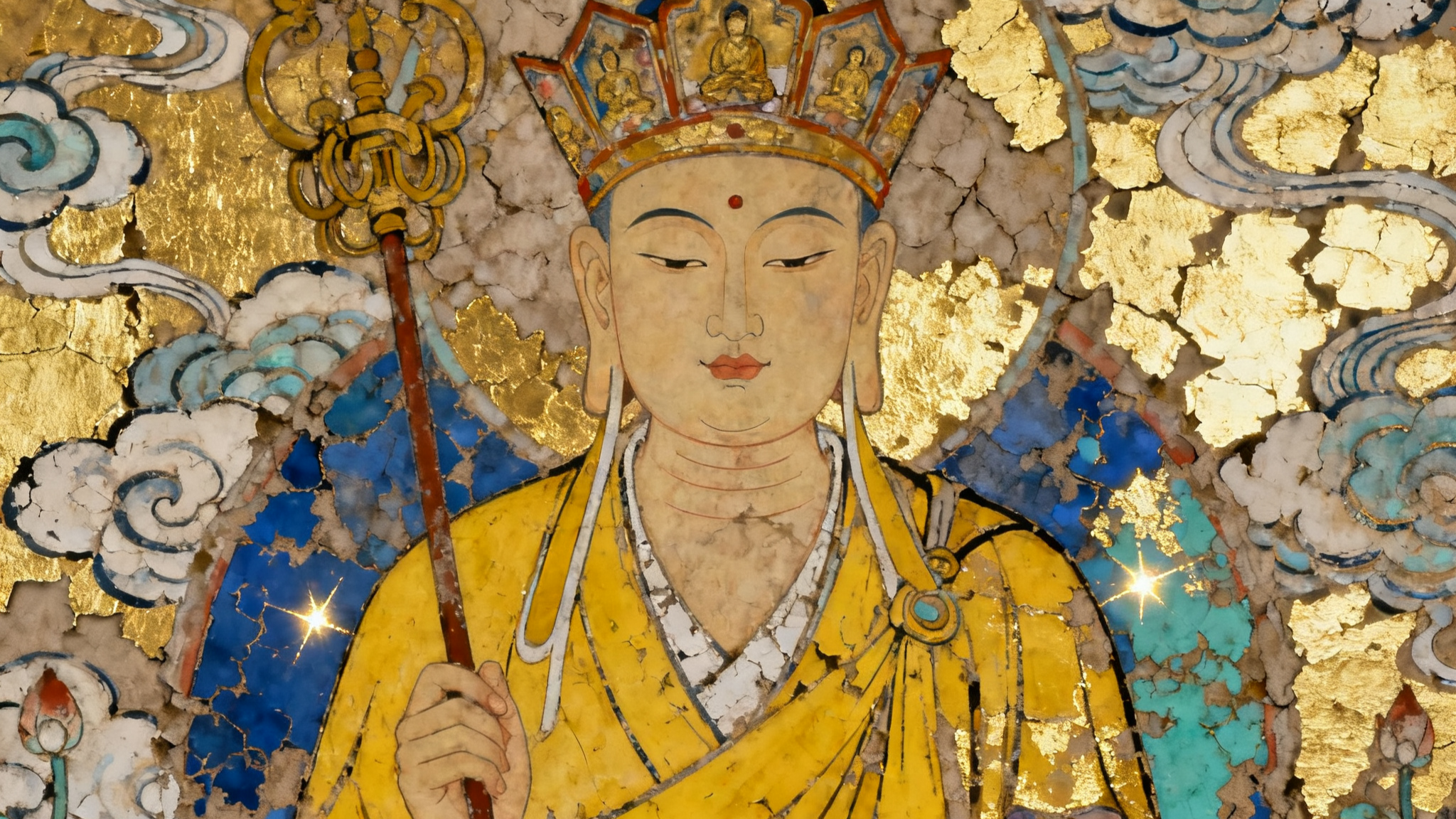 在中華藝術(shù)的浩渺煙海中,佚名的《地藏菩薩圖》宛如一座神秘而莊嚴(yán)的精神燈塔,散發(fā)著跨越時空的神圣光輝。