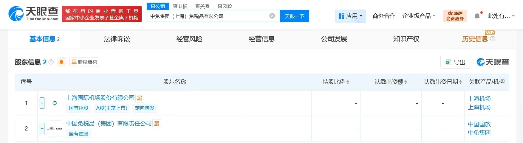 中國中免、上海機場成立免稅品公司,注冊資本2億