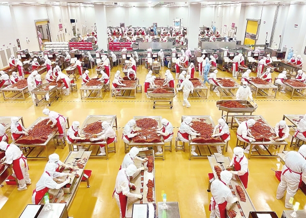 “新工廠一、二期全面投產后,可年產100億根辣條?!甭槔蓖踝觿撌既藦堄駯|介紹,標準化、智能化改造投入不菲,換來了生產品質和效率大幅提升。
