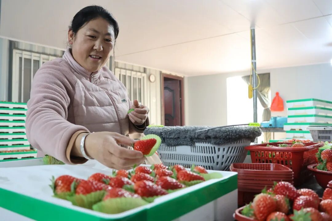 2015年開始,種植戶王芳便引進了紅顏草莓,這種品種管理難度較大,當時省內很少有人種植。王芳便和家人遠赴安徽省學習種植技術,從育苗到管理,從種植單一品種到如今的多品種種植,王芳的種植規模不斷擴大,產業鏈條也不斷延伸。