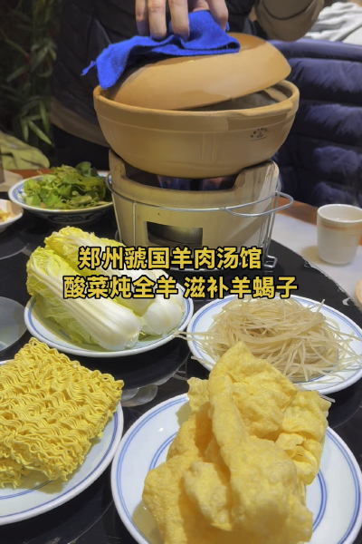 打卡地點位于廣場西街繁華路段,門店營業至深夜,暖黃的燈光照亮街頭,老遠就能聞到濃郁的羊肉香。招牌羊肉湯是當家花旦:羊骨慢熬數小時的湯底奶白醇厚,無絲毫膻味,加入鮮嫩羊肉片,撒上翠綠蔥花和香菜,湯色清亮、香氣撲鼻,喝一口鮮味兒十足,暖心暖胃。砂鍋帶皮羊肉更是一絕,帶皮羊肉經小火慢燉,羊皮軟糯Q彈,羊肉鮮嫩入口即化,湯汁濃郁醇厚,搭配蘿卜、土豆等配菜,營養均衡又下飯。最讓人驚艷的是半斤重的羊肉串,選用新鮮肥瘦相間的羊肉,電火炙烤下滋滋冒油,外焦里嫩,肥肉油脂在口中爆開,香而不膩,瘦肉鮮嫩多汁,孜然和辣椒調味恰到好處,大口吃肉的滿足感讓人直呼過癮。