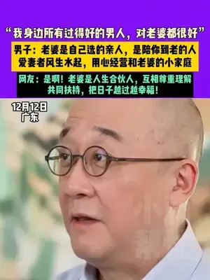 12月12日廣東,“我身邊所有過得好的男人,對老婆都很好”男子:老婆是自己選的親人,是陪你到老的人,愛妻者風(fēng)生水起,用心經(jīng)營和老婆的小家庭,網(wǎng)友:是啊!老婆是人生合伙人,互相尊重理解,共同扶持,把日子越過越幸福!(評論區(qū)@關(guān)系修復(fù)師-東家 )