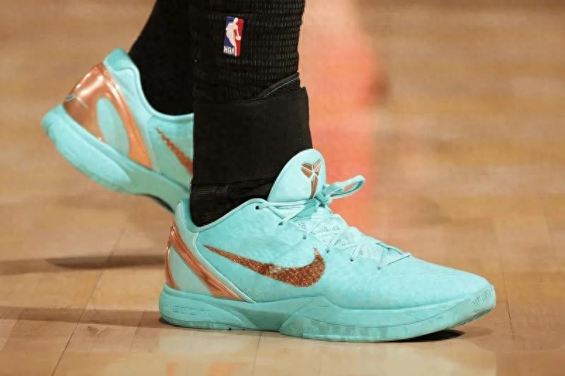 值得一提的是,在比賽中,布倫森上腳了個人專屬的自由女神配色Nike Kobe 6 Protro PE。這款球鞋不僅具有極高的顏值,其設計靈感來源于自由女神像,鞋身的配色和細節都充滿了獨特的藝術感。而且,它在性能方面也十分出色。從科技角度來看,它采用了先進的緩震技術,能夠有效地減輕布倫森在快速移動和跳躍時對腳部的沖擊力,讓他在比賽中能夠更加自如地發揮。同時,鞋面的材質具有良好的透氣性和包裹性,保證了腳部在長時間運動中的干爽和舒適,也為布倫森提供了穩定的支撐。