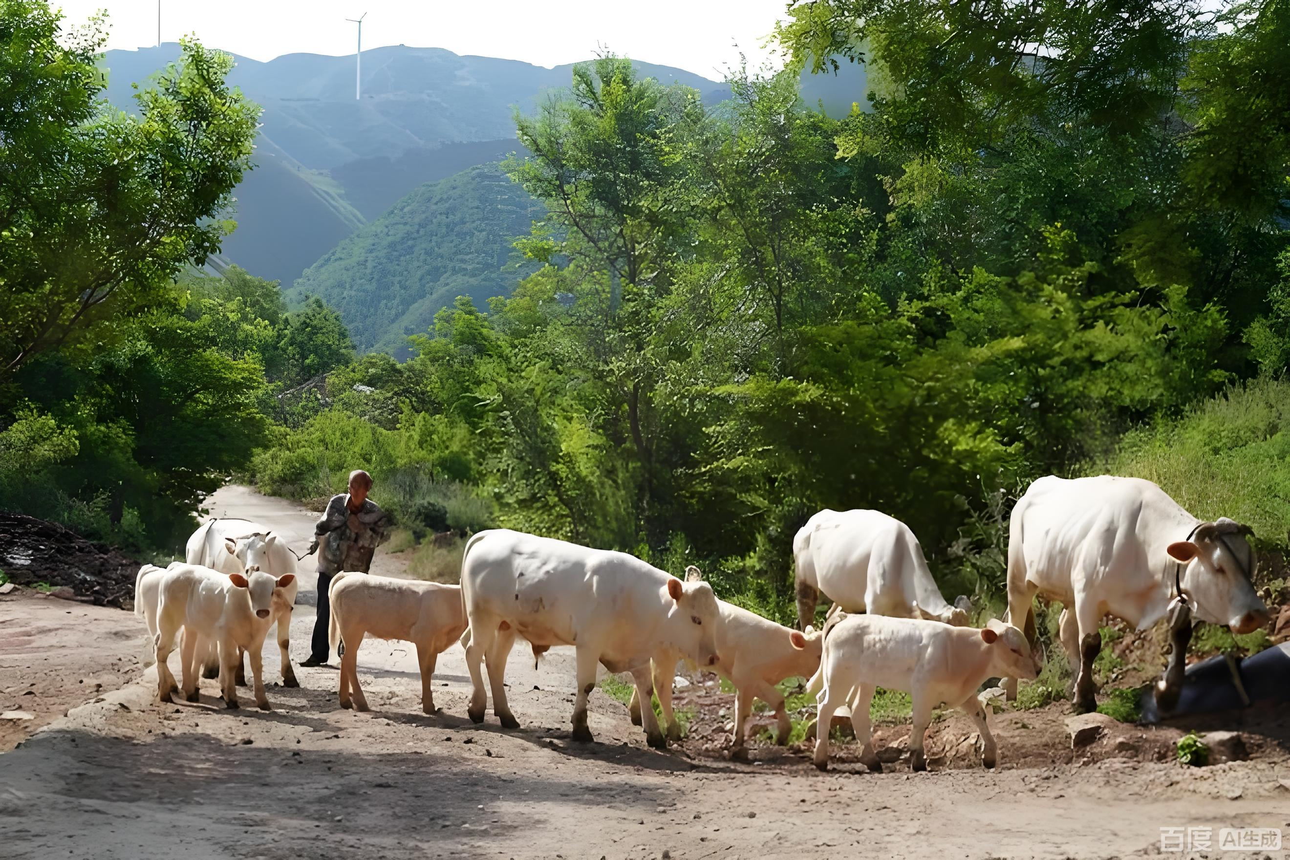 不多時,村巷里響起“叮叮當當”的牛鈴聲,黃牛們從一個個牛圈里緩步走出,蹄聲踏碎晨霧,匯成浩蕩的牛隊。緊接著,“咩咩”聲此起彼伏,雪白的羊群擠擠挨挨,跟在四平八穩的牛群身后,與牛隊一同織成浩浩蕩蕩的“大軍”,漫向村外的山坡與原野。 牛羊隊伍后,放牛的多是老人與婦女,扛著鐮刀、镢頭,腰里別著繩;羊倌則甩著響鞭,嘴里發出只有羊群能懂的指令,腳步匆匆地追著羊群的尾巴。