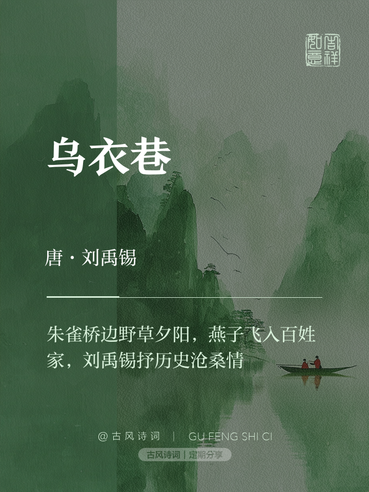 朱雀橋邊野草花,烏衣巷口夕陽斜。舊時王謝堂前燕,飛入尋常百姓家。